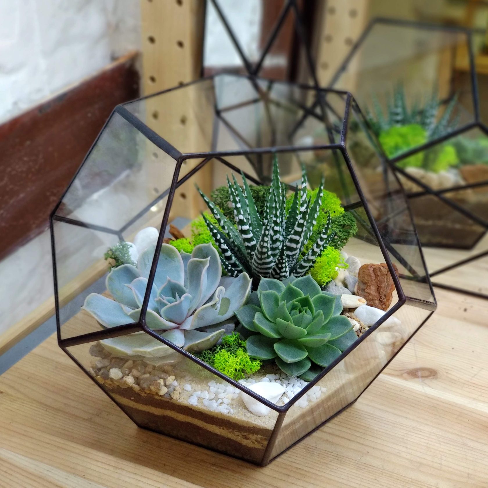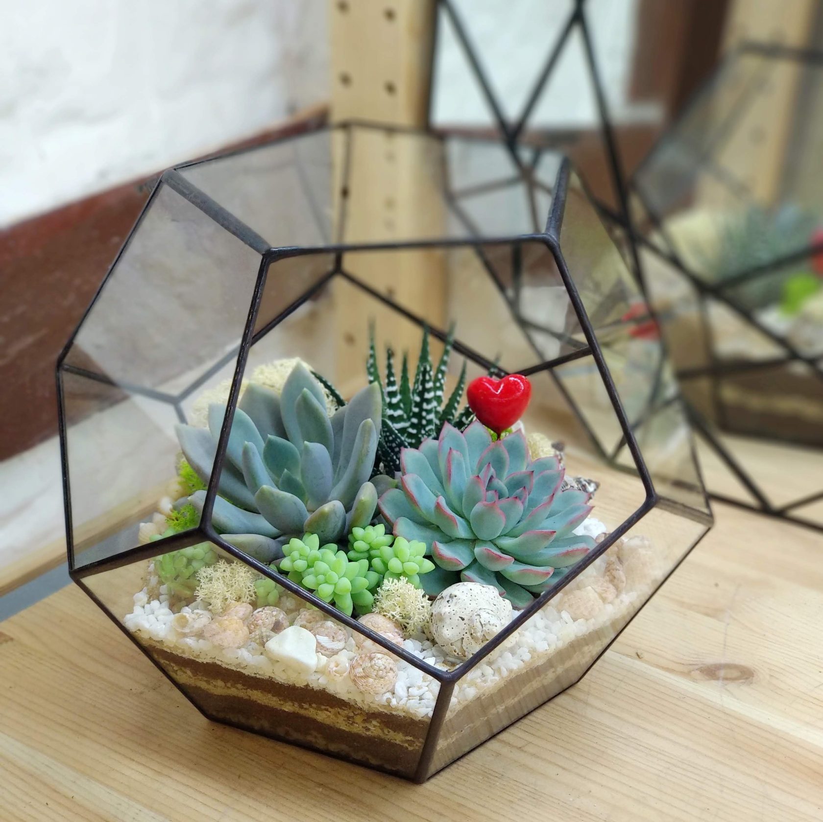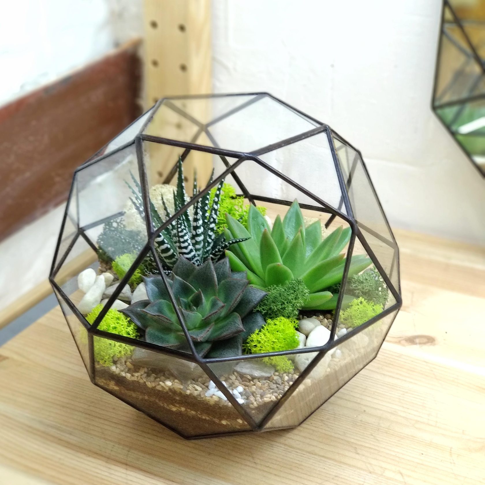 Является одной из самых популярных форм. Станет замечательным подарком родным, друзьям, коллегам. Такая форма отлично впишется на рабочий стол, прикроватную тумбу, украсит гостиную или рабочий кабинет. Уход за флорариумом требует минимальных усилий: 1. Поливать понемногу 2-3 раза в месяц летом и 1-2 раза зимой; 2. Обеспечить хорошую освещенность; 3. Периодически протирать форму мягкой тряпочкой.