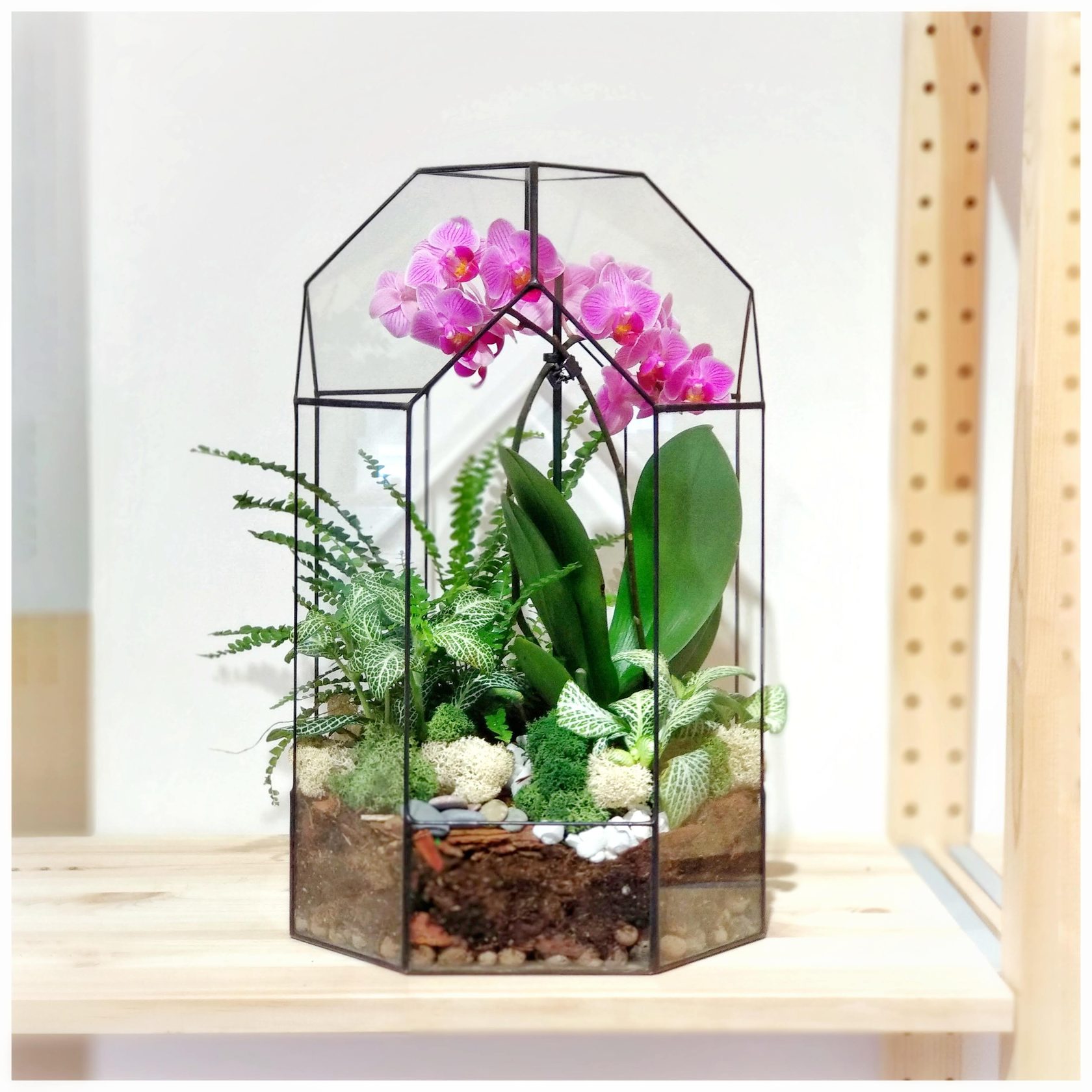 Мы создаем орхидариумы разных размеров и форм. После оформления заказа мы свяжемся с Вами для уточнения деталей композиции — цвета и сорта орхидеи, стиля, дополнительных растений, аксессуаров и т.д. Срок изготовления от 3х дней.