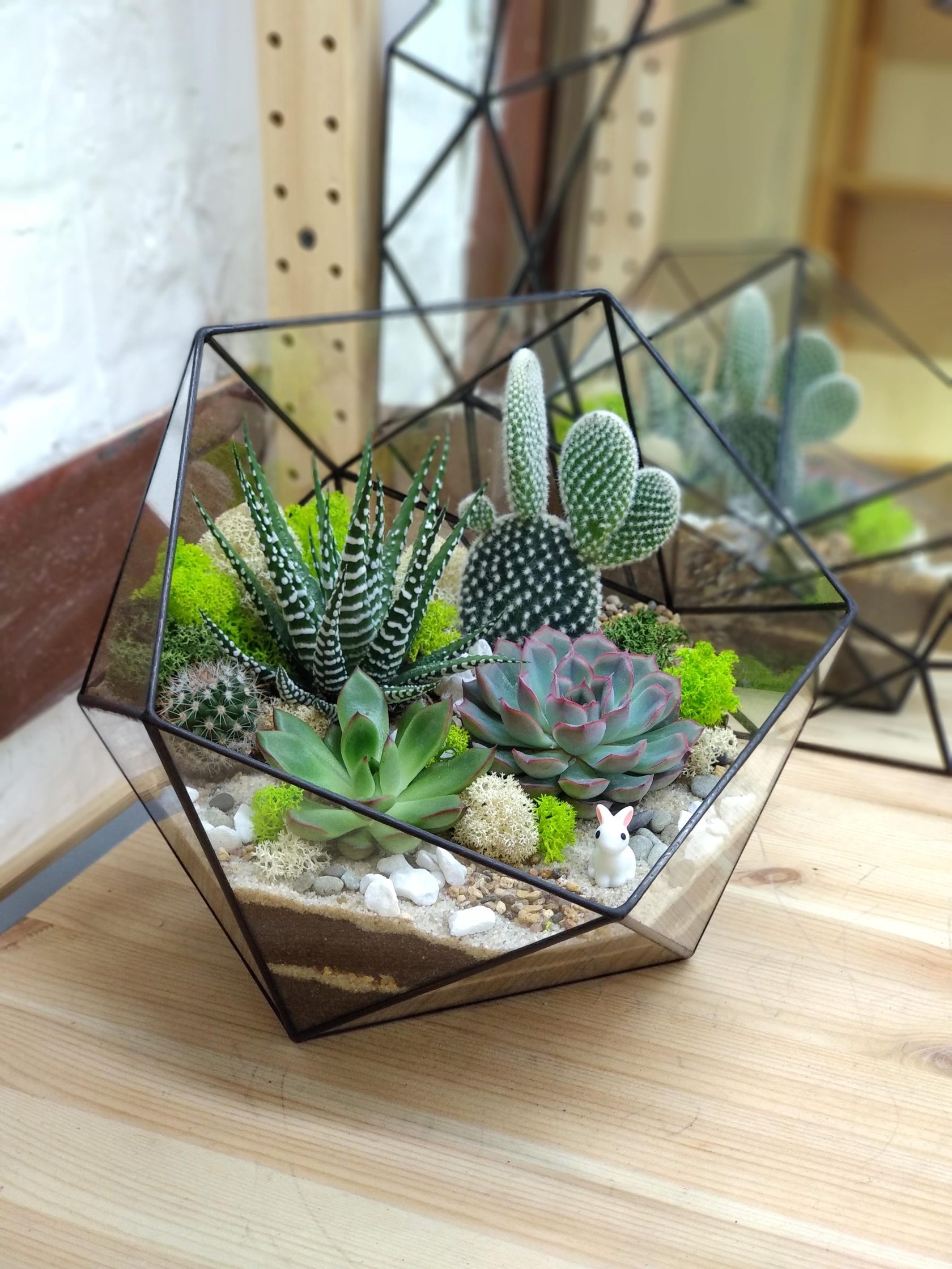 Флорариумы требуют минимум ухода. В этом их особая прелесть. Самое главное, что нужно знать: суккуленты любят свет и не любят излишней влажности. Поэтому поставьте флорариум поближе к окну и не переливайте. Будет достаточно одного полива в полторы-две недели летом, и раз в две-три недели зимой.