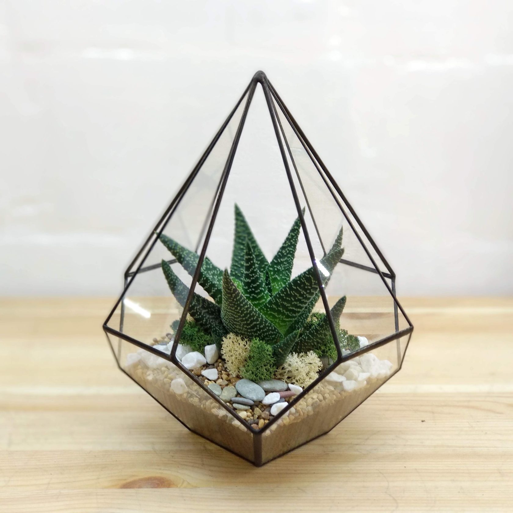 "Алмаз" – полуоткрытая форма, обеспечивает максимальную свободу растениям. За флорариумом в такой форме очень легко и удобно ухаживать.